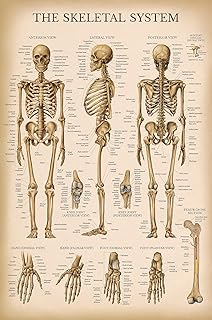 Vintage Skelettsystem Anatomisches Diagramm – Anatomisches Poster der menschlichen Skelett Anatomie (laminiert, 45,7 x 68,6 cm)